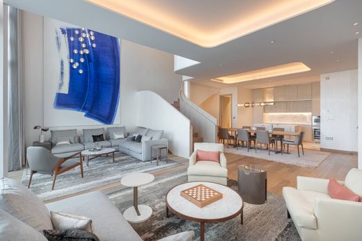 Мы рады представить эти изысканные трёхкомнатные двухуровневые апартаменты в комплексе Four Seasons Private Residences в Джумейре. Полностью меблированные, с захватывающим видом на центр города и небоскреб Бурдж-Халифа, эти апартаменты созданы для роскошной жизни. Главный вход расположен на верхнем этаже, где находится просторная главная спальня с гардеробной, главной ванной комнатой с двумя раковинами и собственным балконом. Спустившись на нижний уровень, вы попадаете в просторную зону открытой планировки, которая включает гостиную с двухуровневым потолком, официальную столовую, современную кухню с техникой Gaggenau, островной варочной панелью и террасой. К этому пространству примыкает закрытая кухня, ведущая в прачечную и комнату для прислуги. На этом же этаже расположены две дополнительные спальни с роскошными ванными комнатами и собственными террасами с зонами отдыха на открытом воздухе с видом на город. Проект Four Seasons Private Residences, спроектированный известным архитектурным бюро Hopkins Architects, а интерьеры курировала Сибилла де Маржери, известен своим элегантным современным дизайном и мебелью от таких брендов, как B&B Italia, Molteni и Minotti, что делает проживание ещё более комфортным. Жильцам также доступен целый ряд роскошных удобств, включая террасу у бассейна, фитнес-центр, кинотеатр, бизнес-центр, набережную канала и близлежащий курорт Four Seasons. Чтобы записаться на просмотр или узнать больше об этих изысканных апартаментах, свяжитесь с нами.