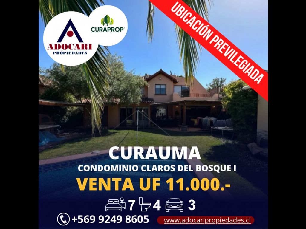 Ваш новый дом в Курауме ждет вас! Дом в эксклюзивном закрытом жилом комплексе Claros del Bosque. Природное окружение, безопасность и идеальная транспортная доступность. Цена: 11 000 UF. Площадь дома: 270 м² | Участок: 600 м². 7 спален | 4 ванные комнаты | 3 парковочных места | Разрешено проживание с домашними животными. Очаровательный интерьер: элегантный холл. Отдельные, просторные и светлые гостиная и столовая. Меблированная кухня с островом, уголком для завтрака и закрытой прачечной. Главная спальня с джакузи и собственной зоной отдыха. Кабинет с ванной комнатой (идеально подходит для домашнего офиса). Гостиная на обоих этажах. Спальня с собственной террасой и видом на сад. Снаружи для наслаждения: бетонный бассейн для незабываемых послеобеденных часов. Крытая терраса и открытая терраса. Ландшафтные сады по всему дому. Отдельная независимая квартира. Парковка на 3 машины. Превосходное расположение: безопасный, семейный кондоминиум, окруженный зелеными насаждениями. В нескольких минутах от водохранилища Ла-Лус, школ, супермаркетов и услуг. Отличное транспортное сообщение с Вальпараисо, Винья-дель-Мар и Сантьяго. Общественный транспорт рядом. Для записи на просмотр требуется подтверждение оплаты в виде предварительно одобренного или одобренного банковского письма. Заинтересованные лица: запланируйте свой визит, отправив соответствующие документы. Живите в безопасном, современном и хорошо транспортном районе.