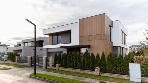 номер объекта: 024049. Продам дом на Новорижском шоссе, в 19 км. от МКАД, в коттеджном поселке Миллениум Парк (Millennium Park). Дом 2-х уровневый, монолит, общей площадью 453 м.кв., расположен на участке размером 8 сот. Есть гараж на 2 м/м. Все коммуникации центральные. Дом под чистовую отделку. На первом этаже: холл, гардеробная, с/у, кухня-столовая, гостиная со вторым светом, кабинет, гараж на 2 м/м. На втором этаже: 4 спальни со своими санузлами и гардеробными комнатами.