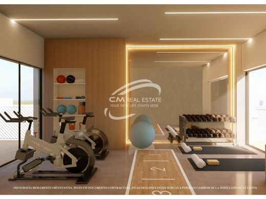 Современные квартиры с 1, 2 и 3 спальнями, кухня открытого плана с гостинои, встроенные шкафы, террасы, система domotic, кондиционеры, все с кладовои, лифт, социальныи клуб, общественныи солярии с тренажерным залом.