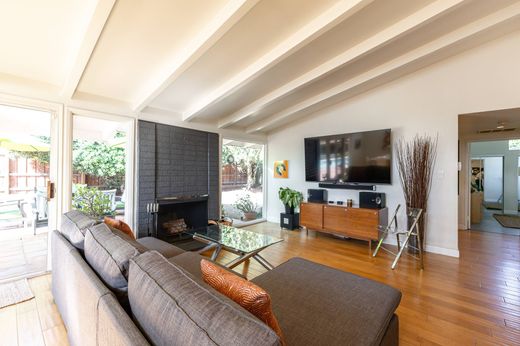 Son derece rağbet gören Corbin Palms semtinde, sakin bir çıkmaz sokakta yer alan bu olağanüstü Orta Çağ Moderni havuzlu ev, ünlü mimarlar Dan Palmer ve William Krisel, AIA tarafından tasarlanmıştır. Bu mimari mücevher, dramatik temiz çizgiler, alçak profilli çatı hattı, tonozlu tavanlar, üst pencereler ve iç mekanları doğal ışıkla doldururken mahremiyeti ve kusursuz bir iç-dış mekan bağlantısını koruyan geniş bir cam duvar da dahil olmak üzere klasik Orta Çağ Moderni unsurlarını sergiliyor. Aydınlık, açık konseptli oturma ve yemek alanları, tonozlu kirişli tavanlar, akçaağaç zemin, odun yakmalı şömine ve büyük resim pencereleriyle sıcak ve davetkar bir atmosfer yaratıyor. Üst pencereler bol miktarda ortam ışığı sağlıyor ve evin ferah hissini artırıyor. Mutfak, granit tezgahlar, paslanmaz çelik aletler, bol miktarda dolap ve kullanışlı bir çekmeceli kiler ile özenle tasarlanmıştır. Mutfaktan hemen sonra, misafir banyosunun yanında özel yapım kitaplıklarla donatılmış açık bir çalışma odası yer alarak işlevsel ve davetkar bir esnek alan oluşturuyor. Ana yatak odası, özel banyo, geniş gardıroplar, yeni döşeme ve yumuşak doğal ışık sağlayan yüksek pencereler sunmaktadır. Geniş ikinci yatak odası, yemyeşil arka bahçeye bakmaktadır ve geniş gardırop alanı ve yeni döşeme içermektedir. Tamamen çitlerle çevrili arka bahçe, eğlence ve Güney Kaliforniya'nın iç mekan-dış mekan yaşam tarzını benimsemek için mükemmel bir dinlenme alanıdır. Çarpıcı bir havuzun, dinlenme alanının ve kuraklığa dayanıklı peyzaj düzenlemesiyle olağanüstü mahremiyet sağlayan olgun ağaçların keyfini çıkarın. Ek özellikler arasında, hem garaja hem de arka bahçeye erişimi olan ayrı bir çamaşır odası ve evden çalışmak için ideal olan garajın hemen yanında bulunan küçük bir ofis bulunmaktadır. Diğer öne çıkan özellikler arasında merkezi klima ve ısıtma, bakır boru tesisatı, yenilenmiş aydınlatma armatürleri, gömme aydınlatma ve baştan sona zamansız Orta Çağ karakteri yer almaktadır. Değerlendirme raporunda 4 yatak odası + 2 banyo gösterilmektedir. Ev şu anda 2 yatak odası + 2 banyodur. Haynes Street Greenway'e yakın ideal bir konumda yer alan ev, restoranlara, alışveriş merkezlerine, bisiklet yollarına, Westfield Topanga Village'a, Warner Center'a ve toplu taşıma araçlarına kolay erişim sağlamaktadır.