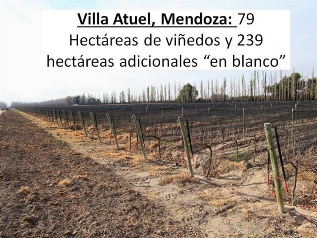 Hektar: 316 Gerçekler: Paul Reynolds İletişim Ana Özellikler: sòlo Çiftliği San Rafael 54 km mesafede yer. 316 hektar sulama toplam alanı 79 saat N asmalarla ekilen alanda, 100% hakları vardır. Yaklaşık loa bağlarının% 35, kumaş antigranizo ile kaplıdır. emlak% 100 inundaciòn sulama hakkına sahiptir. 150 metre Perforaciòn, şu anda kullanılmayan. distribuciòn çeşitlerin, şöyledir,% 52 beyaz çeşitleri (Friulano, Chardonnay, Sauvignon Blanc, Pinot de la Loire ve chenin) ve% 48 kırmızı çeşitleri (Cabernet Sauvignon, Merlot ve Syrah). Parral ve espalier tarafından conducciòn sistemleri vardır. Daha fazla bilgi için mülkiyet kodunu hatırlayın: 16960