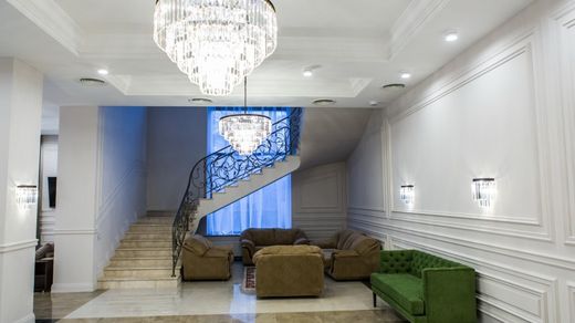 物品编号:013772。出售位于 Rublevo-Uspenskoe 高速公路的房屋,距离 15 公里。位于莫斯科环城公路以西,毗邻大萨列沃 (Bolshoe Sareevo) 小屋开发区。三层房屋,砖结构,面积 4000 平方米,占地面积 200 英亩。有一个独立车库(3个停车位)。已准备入住。一楼:门厅、客厅、大厅、厨房、餐厅、卫生间、带卫生间的卧室。二楼:5 间卧室,配有浴室。三楼:大厅,5间卧室,配有卫生间。现场:夏季阳台、大型凉亭、烧烤凉亭。浴室:卧室、浴室、淋浴间、厨房、餐厅、冷冻桑拿房、雪松桶、更衣室、土耳其浴室、蒸汽房、浴室、干草棚。服务人员住房、保安住房、招待所。该场地的第二个入口设有可容纳 10 辆车的停车场。 TWEED Real Estate 是 AREA 协会的成员。