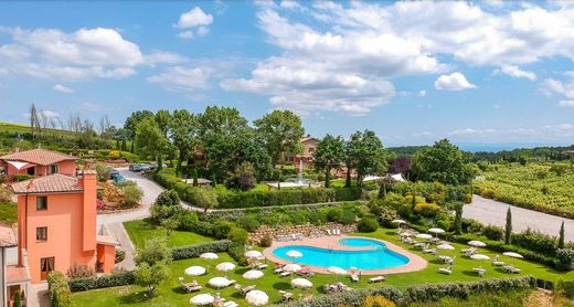 我们在距历史悠久的圣吉米尼亚诺几公里的优越全景位置出售这个位于基安蒂山上的独特的 2500 平方米度假村。从一座典型的托斯卡纳风格建造的古老农舍中,建造了 4 间独立公寓和 5 间卧室。这座古老的庄园分两层,一楼有一个附属设施,由两个宽敞明亮的起居区、一个巨大的全景露台、一个大厨房和一间浴室组成。该物业的一楼可通过令人愉悦的内部楼梯进入,那里有四间优雅的卧室,铺有赤土地板和精美织物,均设有连接浴室、办公室、壁橱、更衣室和三间浴室,均由方便的中央走廊。第二座建筑分布在两层楼上:一楼是一所房子,由厨房客厅、杂物间、两间卧室、浴室和走廊组成。在一楼,我们找到厨房客厅、两间卧室、一间浴室和一个走廊。其他三栋独立别墅俯瞰着原始形状的壮丽游泳池,均配备两间卧室和两间浴室,带有外部凉廊或阁楼,享有山谷山丘、葡萄园或风景优美的美妙公园花园的美景喷泉。该住宅最近建成,拥有 10 间漂亮的公寓,其中 8 间为露台,2 间位于 2 层楼的独立别墅中,可欣赏 Val d'Era 山丘的全景。该庄园由约 80 公顷的土地组成,主要种植基安蒂葡萄园,其他土地分为橄榄树、耕地、牧场和两个湖泊。