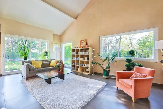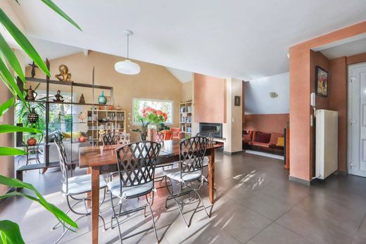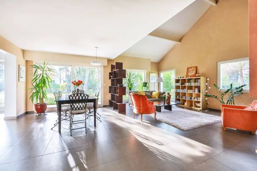 这座宏伟的建筑建于 1980 年,由建筑师设计,距离下湖 (Lac Inférieur) 和小河不远,步行 10 分钟即可到达 RER Vésinet-Centre,非常靠近学校和商店,建筑状况极佳,实用面积达 298 平方米,其中 231 平方米起居空间建在 1,600 平方米的平坦、树木繁茂的地块上,为您提供宽敞、宜人的房间,非常适合家庭生活。这所房子位于底楼;入口配有衣帽间、客用卫生间、非常漂亮宽敞的接待室,包括餐厅、客厅和休息室、设备齐全的大型厨房,后面是洗衣房,所有这些均可通往阳光明媚、绿意盎然的露台面向西南的花园,最后是一间卧室和一间私人浴室。楼上有三间漂亮的卧室,其中两间设有夹层楼,所有卧室均配有橱柜、一间浴室、一间带夹层楼的主人套房(包括办公空间和淋浴间)以及独立卫生间。这座迷人的房子设有双车库和地窖。