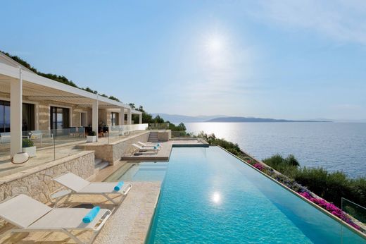 Ayline酒店位于阿格尼(Agni),距离风景如画的海湾及其著名的海滨餐厅仅有几步之遥。该别墅展示了科菲奥特和威尼斯建筑风格与现代美学的独特融合。两个独特的特征是放大全景的窗户以及立面和外墙上使用的石材,这些石材直接来自酒店的场地。每块石头都由熟练的工匠精心手工塑造,然后像复杂的拼图一样组装在一起。 Ayline 共有两层,精致的室内设计增强了起居空间,配有当代法国和意大利家具。该房产最初规划为九间卧室和七间浴室,经过修改,目前由六间异常舒适且设计完美的卧室组成。其余三个房间已被重新利用,以满足各种需求。其中一间房间现在用作宽敞的办公室,拥有自己的私人入口,可欣赏周围环境的全景。另一个房间已改造成健身房,享有令人惊叹的海景,最后,第三个房间用作额外的办公室或图书馆区。在地下一层,您将被双重用途空间的艺术氛围所吸引——这是一个动态的艺术画廊,经过精心设计,复制了博物馆的氛围,可以轻松地旋转和更换展出的艺术品。只需按一下按钮,房间就会变成一个尖端的家庭影院,配备最先进的视听系统,提供可与专业影院媲美的电影体验。宽敞的起居/用餐区和厨房配有宽大、时尚的框架窗户和高耸的横梁天花板,充满了充足的自然光线、开放和通风。所有这些空间均可通往室外区域和游泳池。这家美丽的酒店可通过私人码头直接通往大海。想象一下,走出家门,沿海水域仅几步之遥。艾琳 (Ayline) 周围环绕着广阔的地中海花园,花园内种植着各种各样的植物,包括 50 多棵橄榄树和 100 多种不同的花卉、灌木和树木,如无花果、开心果、松树、石榴、蓝花楹、柠檬、橙子、刺槐和金橘。整个酒店丰富的石头露台提供了令人愉快的户外生活空间。泳池区设有 285 平方米的露台,其中一些露台覆盖有自动生物气候凉棚。这些区域提供了理想的放松和露天用餐环境,同时还可欣赏风景如画的景色。无边际泳池地理位置优越,给人一种与大海融为一体的错觉,给人一种无限空间的感觉。泳池区的台阶首先通向可欣赏海景的瑜伽和冥想场所,然后是专为日光浴床设计的水边甲板,并可通往游船码头。带门控的私人入口和绿树成荫的车道通向停车场。楼梯下降到主双门正门处的铺砌庭院。这是一个引人注目的景观,周围装饰着生机勃勃的层叠花朵和周围墙壁内精心种植的灌木,增添了它的美丽。该房产的买家有资格参加希腊黄金签证计划。