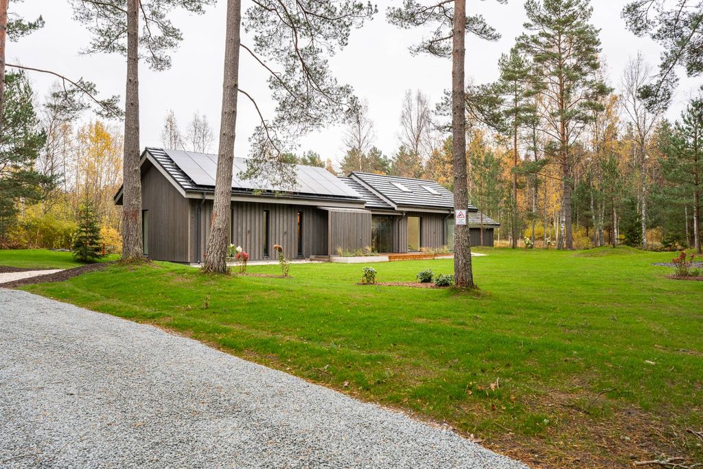“Sūnlauki” 房产位于拉脱维亚一个风景如画、四面环海的美丽地方 - Mērsrags,位于 Mērsrags 灯塔后面约 700 米处,朝向 Upesgrīva。松树林小径将带您直达海岸,距离“Sūnlauki”房产仅 250 米步行路程。海景、新鲜空气、海浪的沙沙声、森林和苔藓的气味,让您充分享受人们寻求的宁静。这是该项目计划建造的 5 栋房屋中的第一栋,未来将形成 Mērsrags 社区的当地和新住宅区。每栋房屋都有自己的设计故事,但又不失整体感。“Sūnlauki” 房屋位于一块被松树林环绕的土地上,面积为 0.5 公顷(5000 平方米)。新建的 Smilšu 街方便您前往该房产。从 Smilšu iela 到房产处建有一条内部车道,车道上设有停车平台。“Sūnlauki”房屋是根据单独开发的项目建造的。建筑总面积为 129.6 平方米,其中 107.8 平方米为居住空间,21.8 平方米为室外空间。房屋中央有一个封闭的玻璃阳台,将房屋分成两部分,从而将起居区与睡眠区分开。在较冷的天气里,可以用推拉窗关闭阳台。此外,高品质的全景窗户营造出房屋的宽敞和明亮。居住面积包括: - 客厅和厨房(工作室) - 39.4 平方米 - 屋顶下的封闭式玻璃阳台 - 15.8 平方米 - 卧室 - 11.8 平方米 - 卧室 - 13.2 平方米 - 走廊 - 13.6 平方米 - 卫生间 - 5.6 平方米 - 技术室 - 4.8 平方米 - 风向标 - 3.6 平方米 但室外区域包括: - 后院露台 - 17.7 平方米 - 门廊 - 4.1 平方米 目前,后院区域正在绿化。 在后院区域,修剪了松树,而在其余的外部区域,保留了自然森林景观。 房屋结构由平板基础上的木质框架制成,外部装饰 - 彩绘云杉。 房屋的屋顶全都铺有瓷砖。 房屋交付时带有内置浴室和白色饰面。通讯:在土地上钻孔,安装下水道,并连接三相电。房子有一个热泵(Alpha Innotec 6kW 空气水),以及一个 Jøtul 炉。家里安装:太阳能电池板系统 8.0 kW(太阳能光伏模块 - Jinko Solar JKM470M-7rl3-V 单晶)。在“Sūnlauki”领土上建造了一座 13.3 平方米的辅助建筑,用于存储财产或安装车间或满足其他一些需求。房子的建设计划于 2023 年 11 月完成。设计符合 A 级能效标准。与 SWEDBANK 合作,前 2 年提供 A 级住房:0% 利率 + 6 个月。Euribor 和 100% 的贷款发放费折扣。