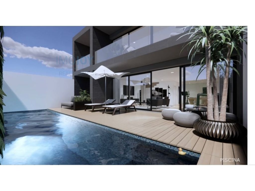 现代别墅,有4层楼,9个房间,电梯,温水游泳池,全景
