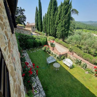 在基安蒂地区的加约莱附近,一座文艺复兴时期的村庄里,一座16世纪农舍的部分建筑被业主精心修复,既保留了其典型的托斯卡纳风情,又展现出别具一格的魅力。这座精致的建筑群在16世纪曾属于一个与美第奇家族敌对的显赫银行家族。一条蜿蜒穿过橄榄树林和葡萄园的土路通往这里,沿途风景优美,私密宁静。穿过一个点缀着美丽花卉的迷人花园,便可进入一个拥有赤陶天花板和裸露横梁的三层客厅、一个舒适的餐厅、一个厨房、一间带独立浴室的大双人卧室、一间客用浴室以及几个储藏室,构成了房屋的一楼。楼上设有五间带浴室的卧室和一个书房。地下室则设有一个大型酒窖和多个杂物间。该房产配备了独立的供暖系统,使用水和城市燃气。沿着橄榄树间悠闲漫步,即可到达休闲区。那里有一个可以俯瞰周围乡村美景的绝佳游泳池,以及舒适的休息区,让您在欣赏锡耶纳山丘上壮丽的日落美景时,尽享舒适与乐趣。锡耶纳山丘上遍布城堡、别墅和数不胜数的美景。