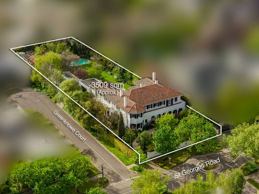 这座地标性的图拉克豪宅被誉为墨尔本最尊贵的庄园之一,50多年来一直由同一家族持有。它坐落于墨尔本最负盛名的林荫大道——圣乔治路,占据着令人垂涎的地理位置。这座约建于1920年的地中海复兴风格住宅规模宏大,建筑精美,潜力巨大,拥有柱廊式外观和绵延不绝、精心维护的花园,占地约3,509平方米,拥有AAA级土地。这座独特的房产体现了其时代的辉煌,提供富丽堂皇的娱乐区,并延伸至专为现代家庭生活设计的宽敞空间。富丽堂皇的接待大厅引入了一系列正式和非正式的起居、用餐和娱乐区域,每个区域都拥有充足的自然光线和修剪整齐的广阔花园景观。带有餐具室的花岗岩厨房和毗邻的家庭餐厅延伸至铺砌的露台和宽阔的草坪,椭圆形的好莱坞山风格游泳池坐落在成熟的季节性植物之中。七间卧室、九间浴室以及多个休息区和书房,提供舒适、私密和灵活的居住空间。主套房位于花园之上,配有大理石壁炉、男女更衣室和巴黎风格的独立卫浴。车库毗邻健身房或工作室,另有一栋附属建筑,可用作独立客房,并可通过后方的圣凯瑟琳巷(St Catherines Lane)进入私人车辆。这栋宏伟宜居的住宅,在不受历史遗迹覆盖、地役权或限制性契约约束的地块上,提供了卓越的空间和灵活性。它拥有罕见的两条独立临街以及后巷通道,舒适宜居,令人倍感舒适。这处千载难逢的房产以其宏伟、美观、规模和无限制的配置而著称,在墨尔本最负盛名的郊区和大道上,拥有无与伦比的发展潜力和灵活性。由 Stonnington | 墨尔本苏富比国际地产公司倾情代理,进行国际营销。